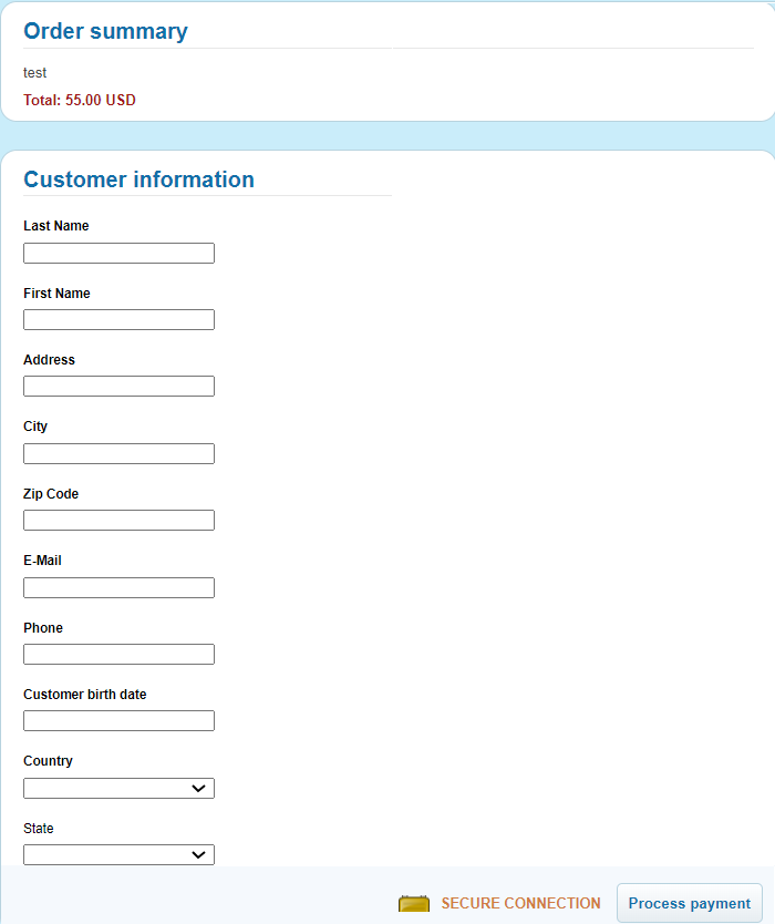 Buy Now Button integration is relevant for Connecting Party who has limited portfolio of products to sell. It is the easiest way to integrate with Sarexspay. This way of integration doesn’t require much technical effort. Buy Now Button integration also allows Connecting Party to exclude itself from storing, processing, or transmitting Payer’s cardholder data or other sensitive payment details. Such data is submitted by Payer on Sarexspay hosted customer details form and payment form in PCI DSS certified environment.