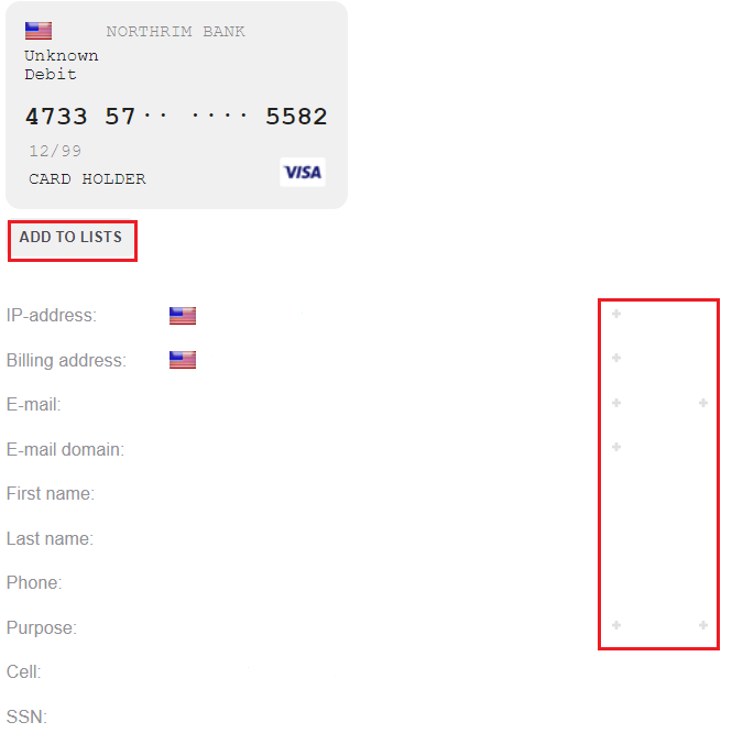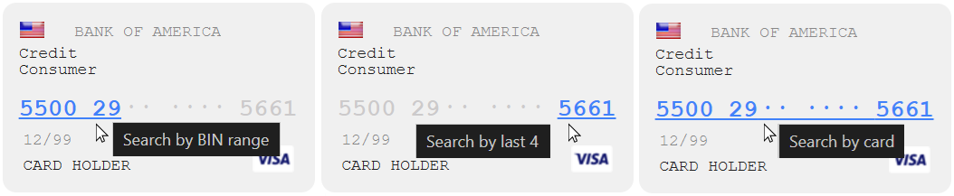 • BIN range from order