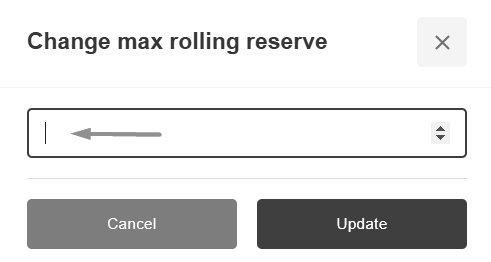 Max Rolling Reserve can be changed in the Change Max Rolling Reserve window that appears. To set or edit the Max Rolling Reserve, click on the value -.