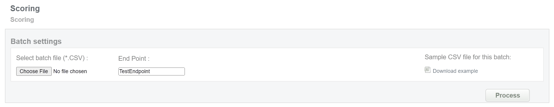 This batch allows to get information about card scoring. Collect order IDs and needed card data, assigned by Sarexspay system and enter all information to the CSV file and upload it to receive card scoring information. An example of CSV file for upload is available on the same screen.