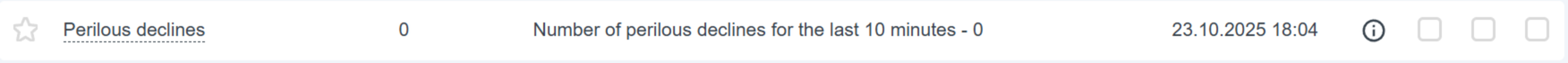 This section is located in Overview. This section displays triggered perilous declines which were selected by Manager.